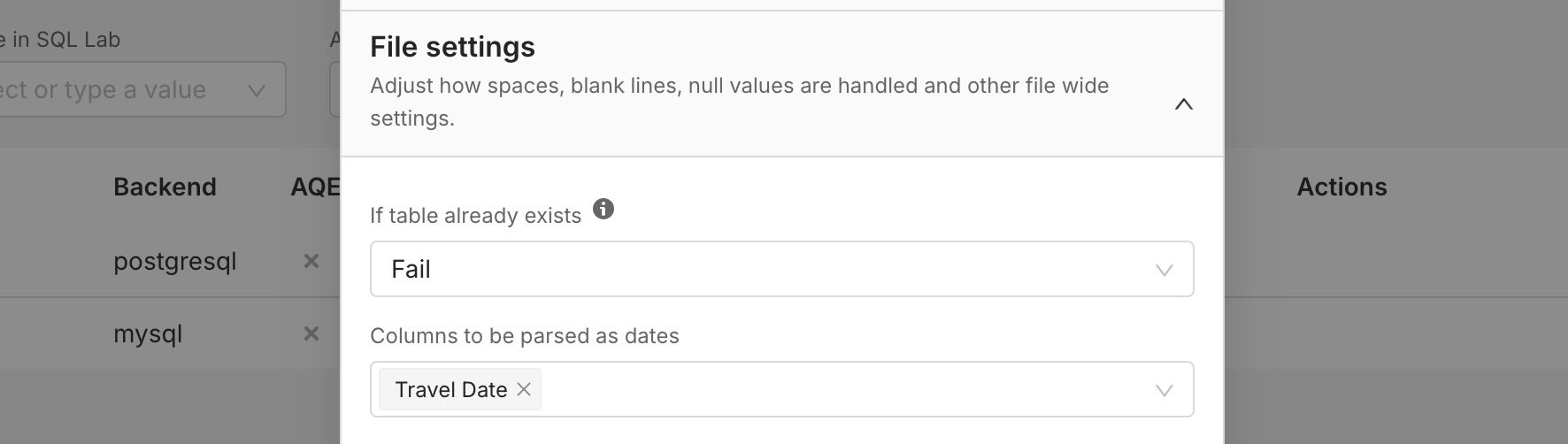 Next enter the text Travel Date into the File settings ‣ Columns to be parsed as dates field.